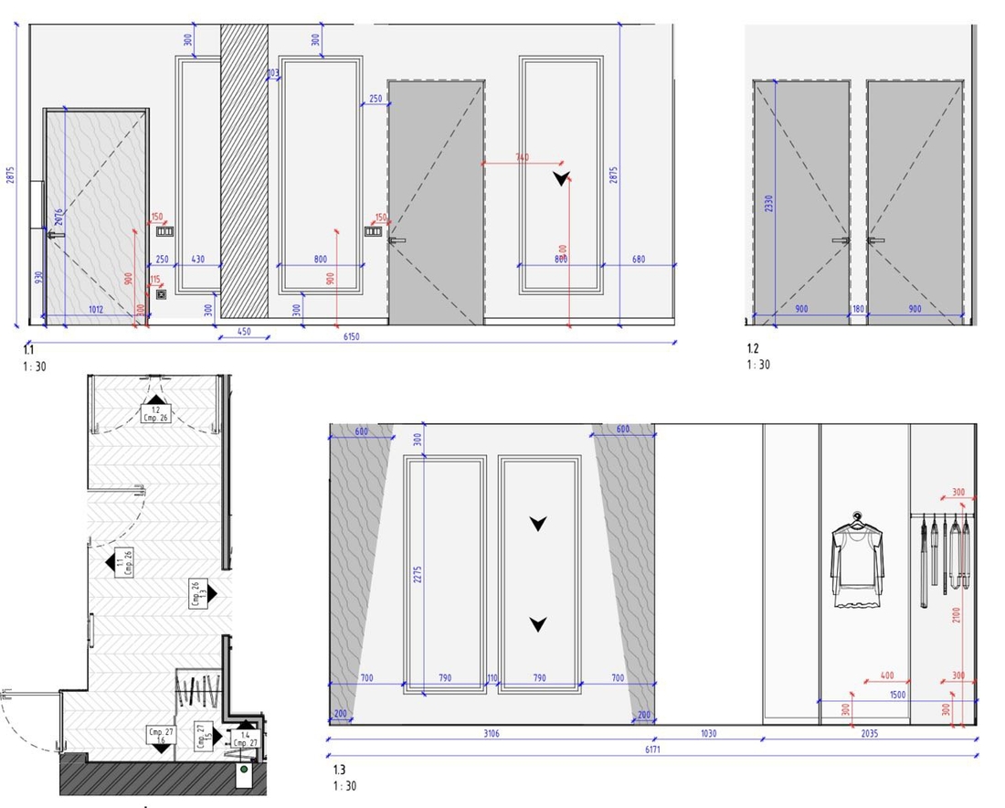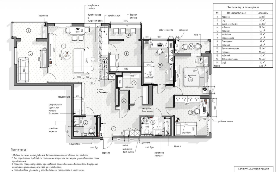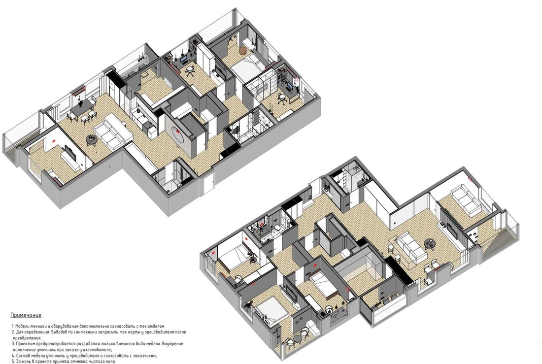 Создание огромной гардеробной и несколько отдельных спальных зон